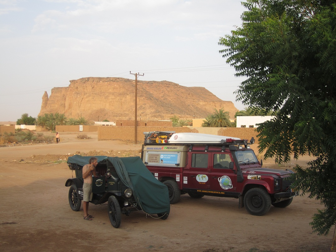 Today we have to drive 262 kilometres through the Bayada desert. After 150 kilometres the T-Ford runs on two cylinders.