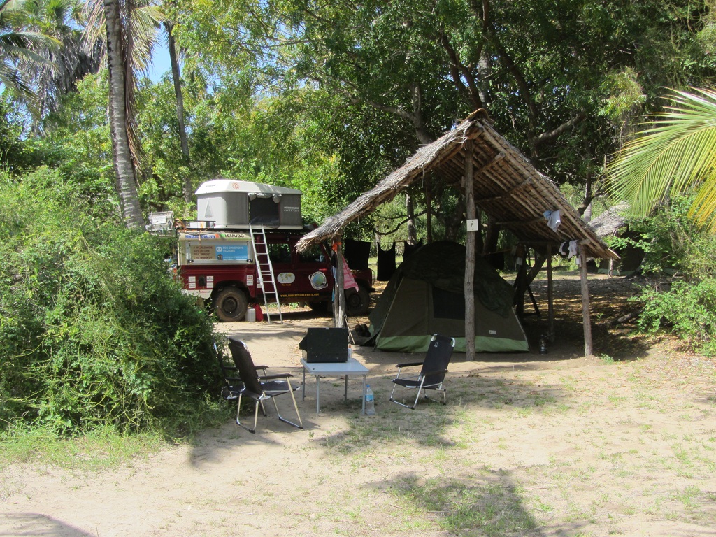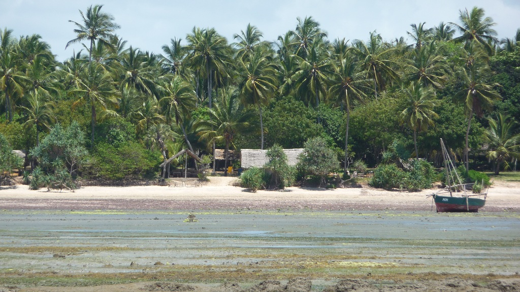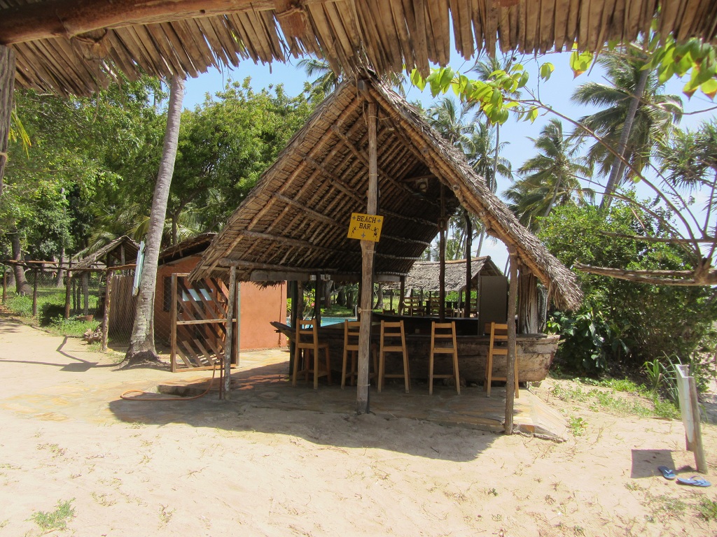 We liggen wat op het strand, Jon begint eruit te zien als de gegrillde kreeft van gisteravond. Na een uurtje zeilen we terug naar de lodge, Tusker time.