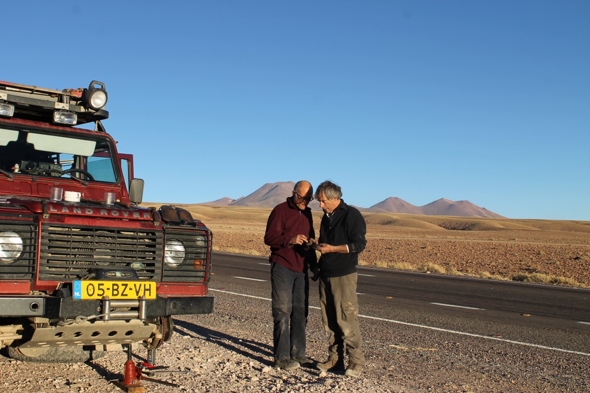At the customs we meet a group of motor riders who are so impressed by the initiative of Dirk and Trudy that they spontaneously offer a flag of Chile.