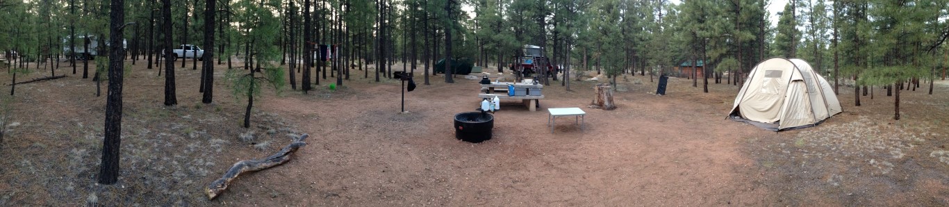 At 18.00 we arrive at Jacob Lake, build up our tent and take a shower before we go to the only restaurant in this area. This is our present to Dirk and Trudy. After a 45 minute walk we arrive at the restaurant clean and with our best clothes on. It is 20.40 when we arrive. But no luck for us… de kitchen closed 10 minutes earlier and the only thing we can eat is a sandwich. By the grace of God we are allowed to sit at a table. Under the grumpy looks of the waiters we get our sandwich and chips.