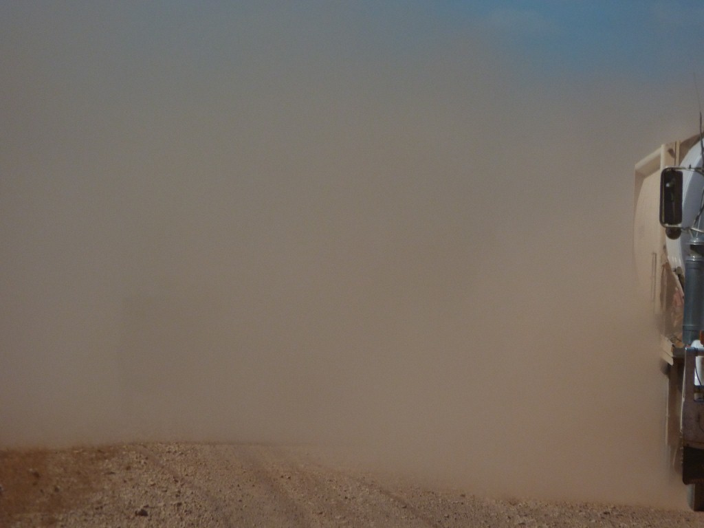 We verlaten Floraville Downs. Eerst rijden we over een enorme vlakte, waar veel koeien grazen. Op de kleine stukken gravel worden we regelmatig ingehaald door roadtrains die, hoewel de T-Ford het super doet, Dirk en Trudy volledig doen verdwijnen onder wolken stof. We zien opnieuw regelmatig wallybees en kraanvogels, en nog een twijfelachtige slang die rechtsomkeer maakt en weer in het struikgewas verdwijnt. In Normaton doen we inkopen. We rijden door tot Karumba en zelfs Karumba Point (enigste plek aan deze kant van deze Gulf, waar we de zon in de zee kunnen zien zakken.) Laagvliegend gaat de T-Ford naar de kust, wij kunnen hem met de Landrover haast niet bijhouden. Net op tijd schuiven we aan op een terras aan het strand en zien, onder het genot van een borrel en culinaire maaltijd de glorieuze zon in de zee zakken. Daarna op zoek naar een camping, want de meeste waren vol. Natuurlijk lukt dat ook deze keer.